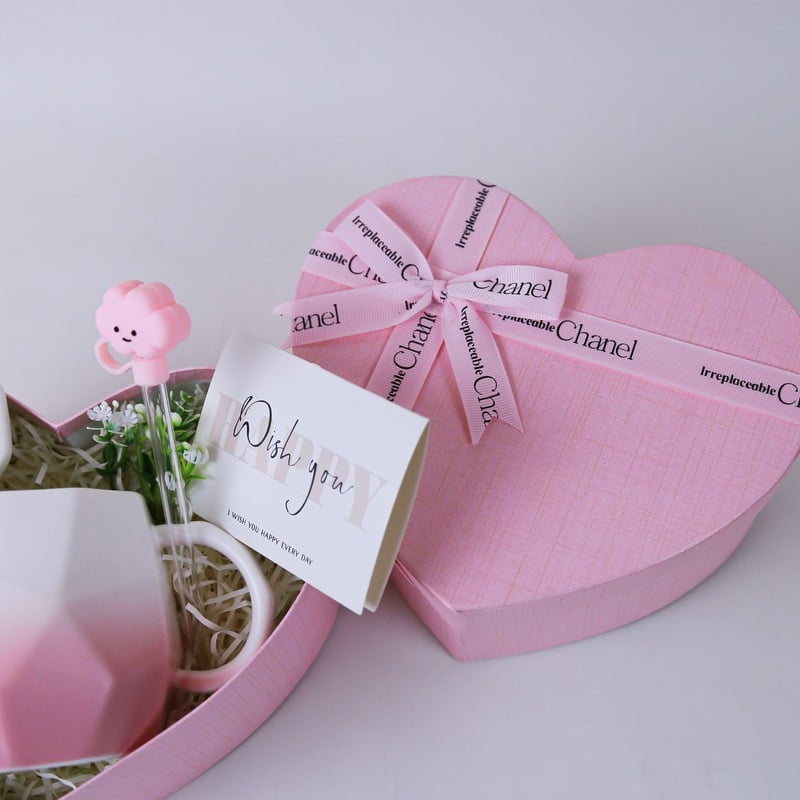 Hộp quà hình trái tim (20×9 cm) kèm nơ xinh xắn – tượng trưng cho sự gắn kết, yêu thương, tinh tế ngay từ ánh nhìn đầu tiên.